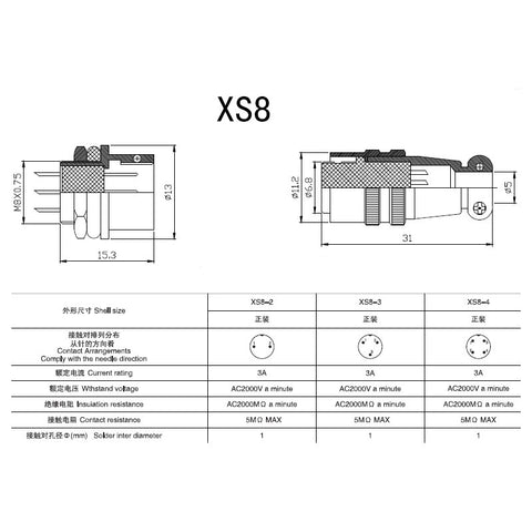 8mm connector plug XS8 2Pin connector 3Pin connector 4Pin connector Socket Male Female Push pull self-locking complete set