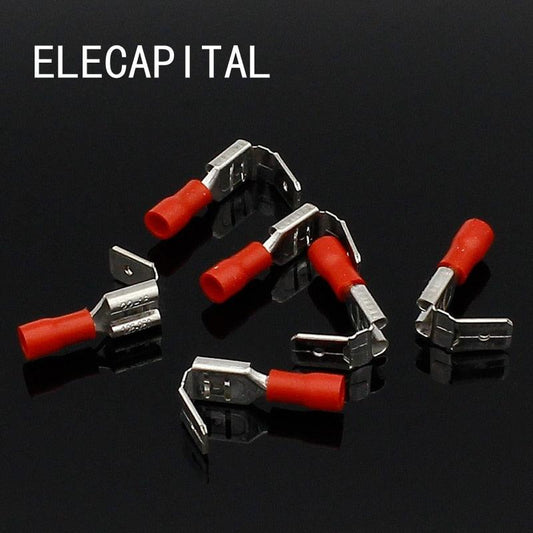 100pcs Red Spade Crimp Terminals Fully Insulated Electrical Connectors Audio Wiring