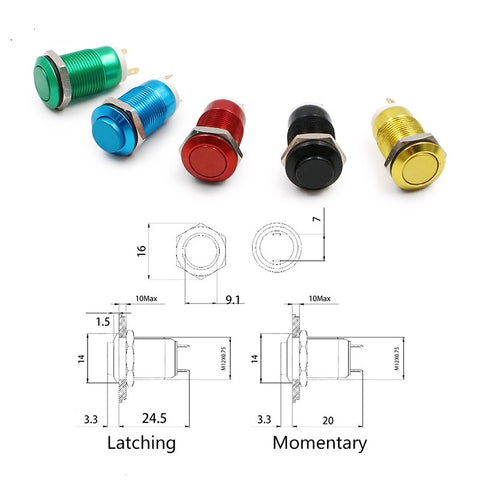 12mm Oxide Aluminium Red Blue Green Black Yellow Waterproof Metal Push Button Switch High Flat Head Momentary Fixation Latching
