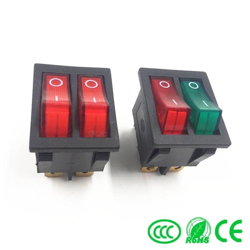 1pc DIY Model KCD3 Double Boat Rocker Switch Toggle 6 Pin On-Off With Green Red Light 20A 125VAC Factory Online Wholesale Hot