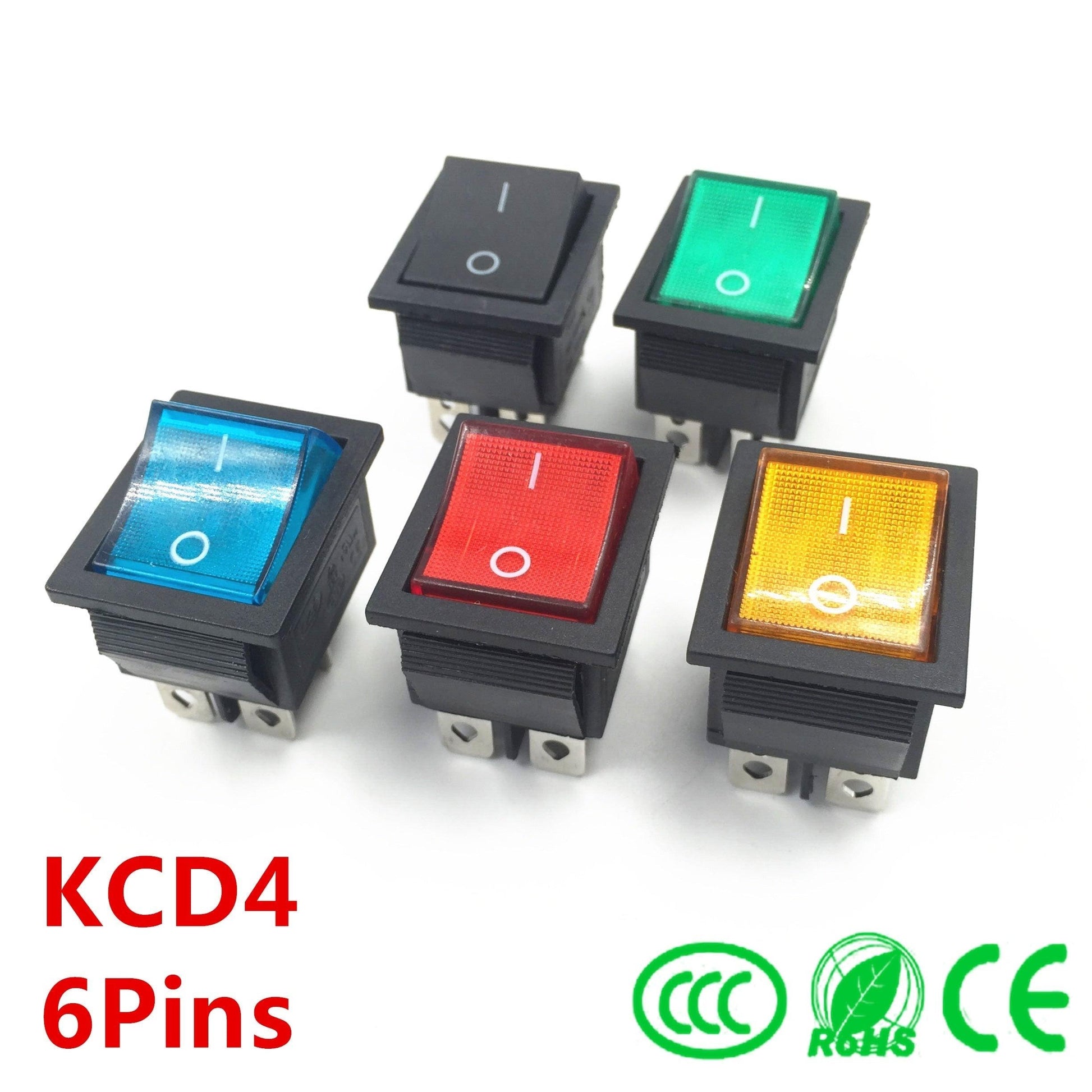 Latching Rocker Switch Power Switch I/O 6 Pins With Light 16A 250VAC 20A 125VAC KCD4 Green Red Yellow Blue Black Boat DPST