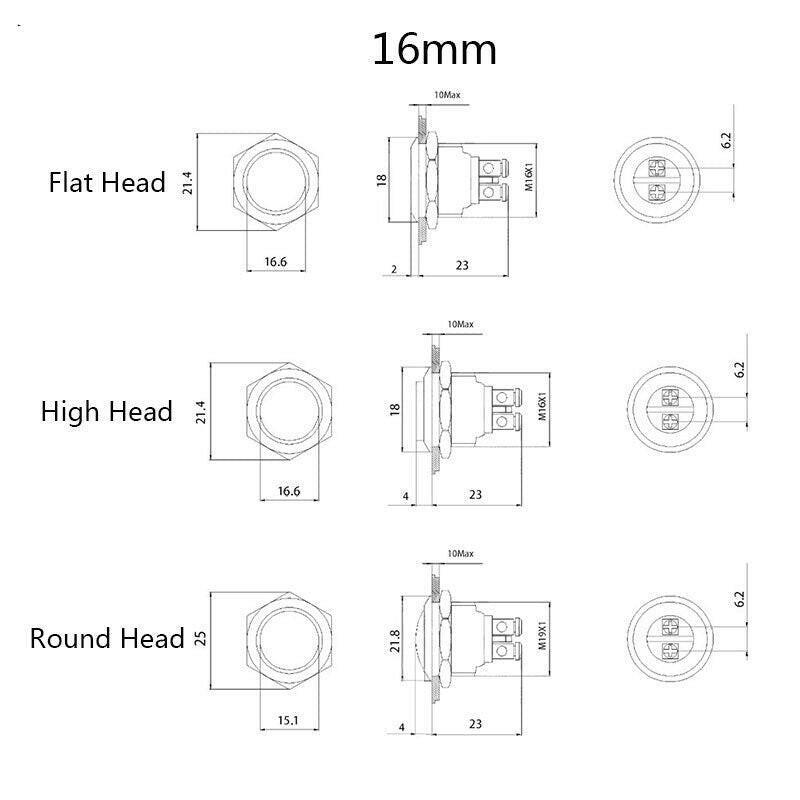 16mm 19mm NC Normal Close Metal Push Button Switch Momentary Reset