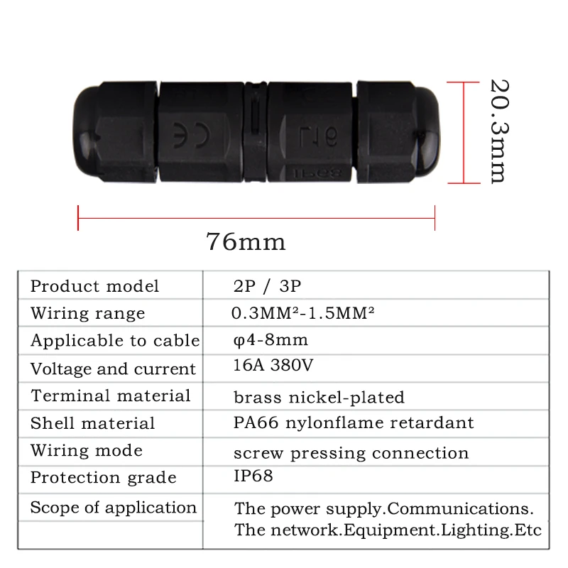 IP68 Waterproof Connector I-Type L16 2/3 Pin Electrical Terminal Adaptor Wire Connector Screw Pin LED Light Outdoor Connection